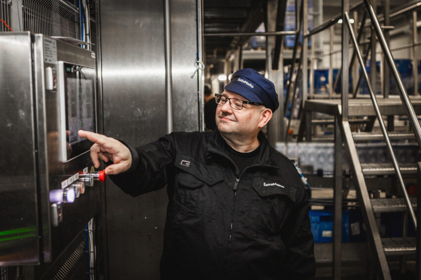 ”Kenenkään ei enää tarvitse lykkiä täysiä rullakoita, ja saamme tunnissa purkitettua noin 2000 litraa enemmän maitoa kuin aiemmin. Myös hävikin määrä on vähentynyt, kun purkit pysyvät aiempaa paremmin ehjinä”, kertoo Satamaidon laitospäällikkö Jarmo Virtanen.