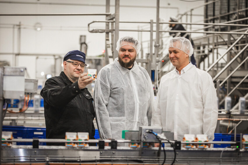 ”Kenenkään ei enää tarvitse lykkiä täysiä rullakoita, ja saamme tunnissa purkitettua noin 2000 litraa enemmän maitoa kuin aiemmin. Myös hävikin määrä on vähentynyt, kun purkit pysyvät aiempaa paremmin ehjinä”, kertoo Satamaidon laitospäällikkö Jarmo Virtanen.